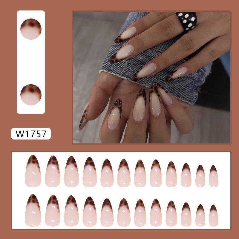 Europeiska och amerikanska lösnaglar enkel enfärgad bärbara nagelbitar lösnaglar Fransk leopardmönster avtagbara nagelbitar 24 stycken