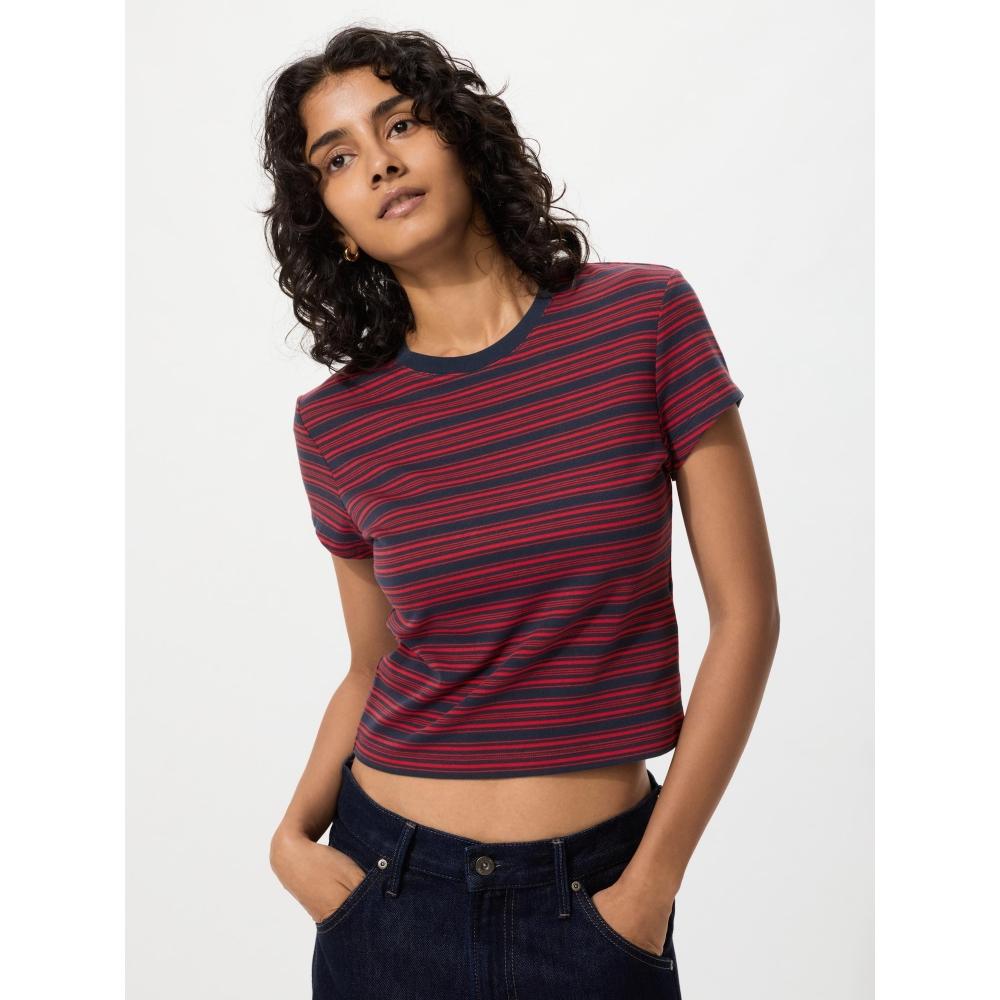 The UNIQLO Japan Mini T is a basic short-sleeve T-shirt with a length from the 90s style and a tight fit. Its well-fitted silhouette and clean details make it easy to match with casual, clean, or sporty styles. This product has no transparency (01 OFF WHITE may have slight transparency) and has no pockets.