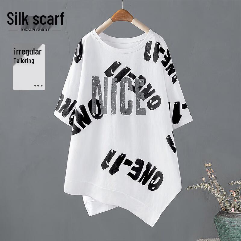 Dam T-shirt med lös passform, färgblock, bokstavstryck, rund halsringning