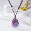 Natural crystal pendant, amethyst necklace, hand woven, water droplet jewelry