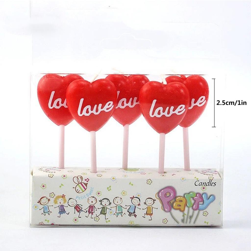 5pcs Heart Birthday Candles Cake Candles Cupcake Topper Candles Dessert Candle Holders for Wedding, Anniversary, Romantic Night