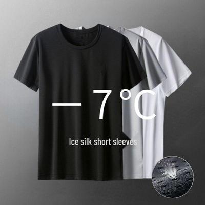 Herr 2024 Sommar Ice Silk Snabbtorkande Andningsbar Kortärmad T-shirt, Rund Hals, Plusstorlek.