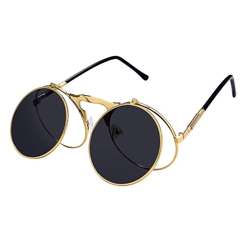 Vintage Runda Flip-Up Solglasögon Steampunk Kostymglasögon för Män Kvinnor Ungdomar Cirkel Retro Stil