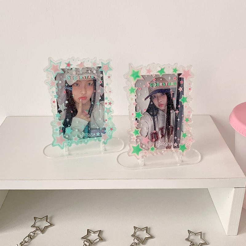 Glänsande Stjärna Akryl Fotoramar för 3 Tum Kpop Idol Anime Kortdisplay Kreativ Kort Hållare INS Stil Skyddsfodral Grossist