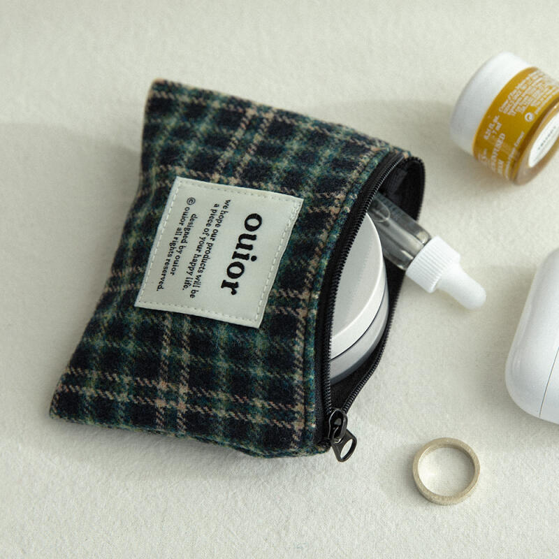 Platt Necessär _ Ullrutig Semester Marinblå (S/kortplånbok)