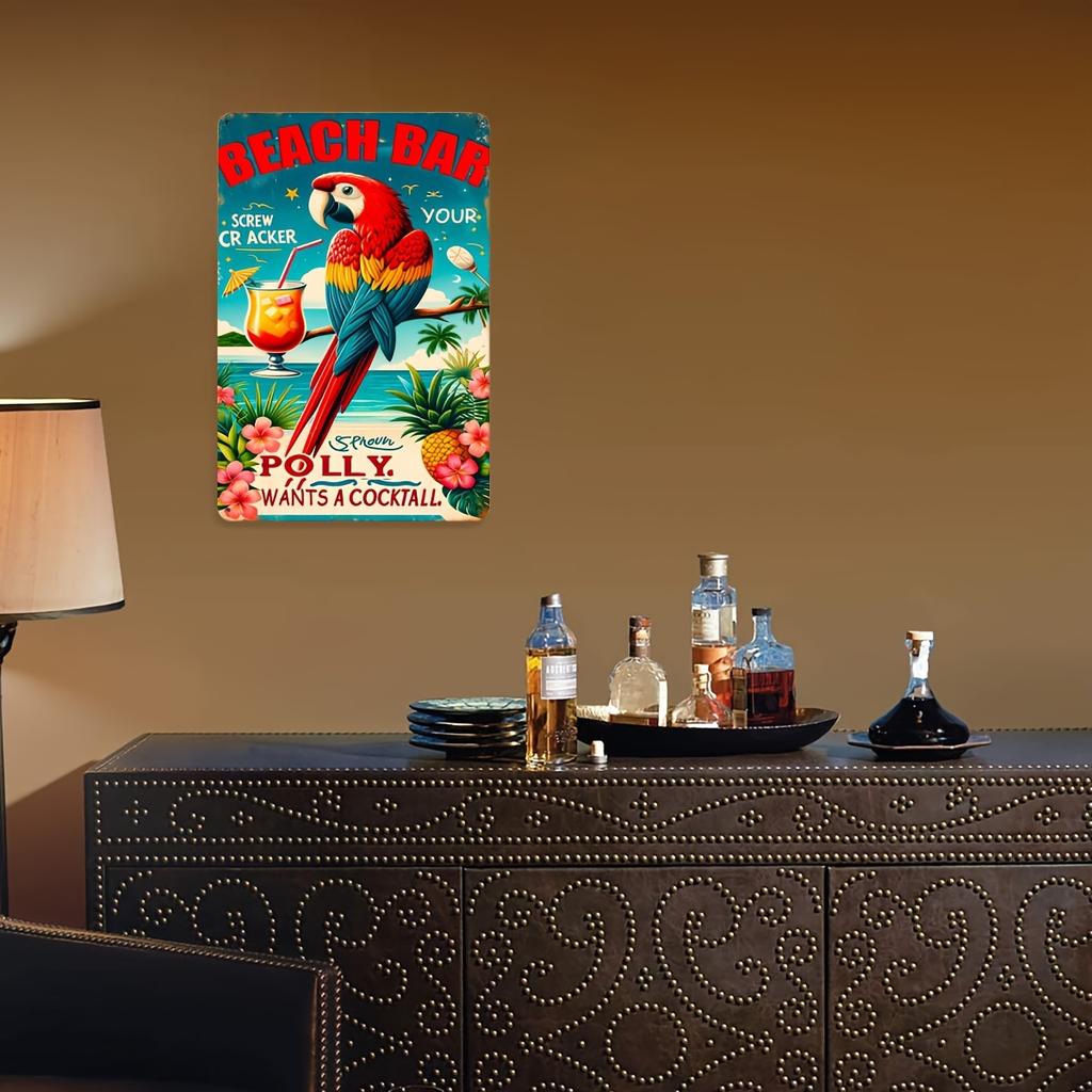 Set of 1 Vintage Aluminum Metal Sign Tropical Beach Bar Parrot Cocktail Design Retro Wall Decor for Pub Club Cafe Restroo