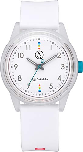 Q&Q SmileSolar Men's Solar-Powered Analog Watch with Matching Style, Waterproof Urethane Strap, White (RP26-009)