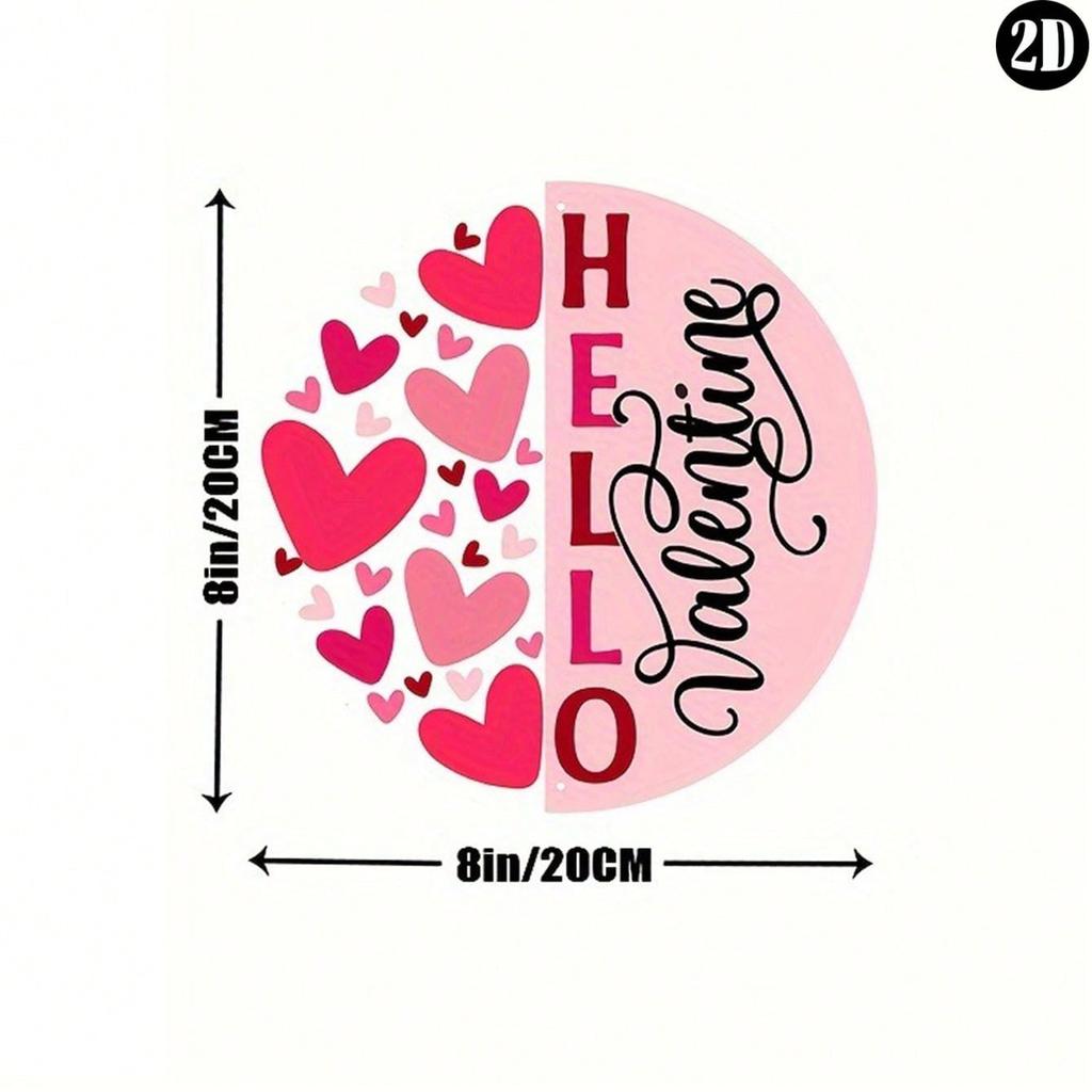 1 Piece Pink Aluminum Metal Sign Round Heart Wreath Decor Valentine Hello Valentine's Day Heart Pattern