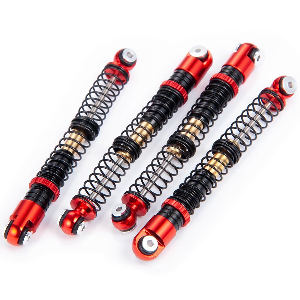 Four 53mm Scale Aluminum Shocks for 1:24 SCX24 RC Crawler (Red + Black)