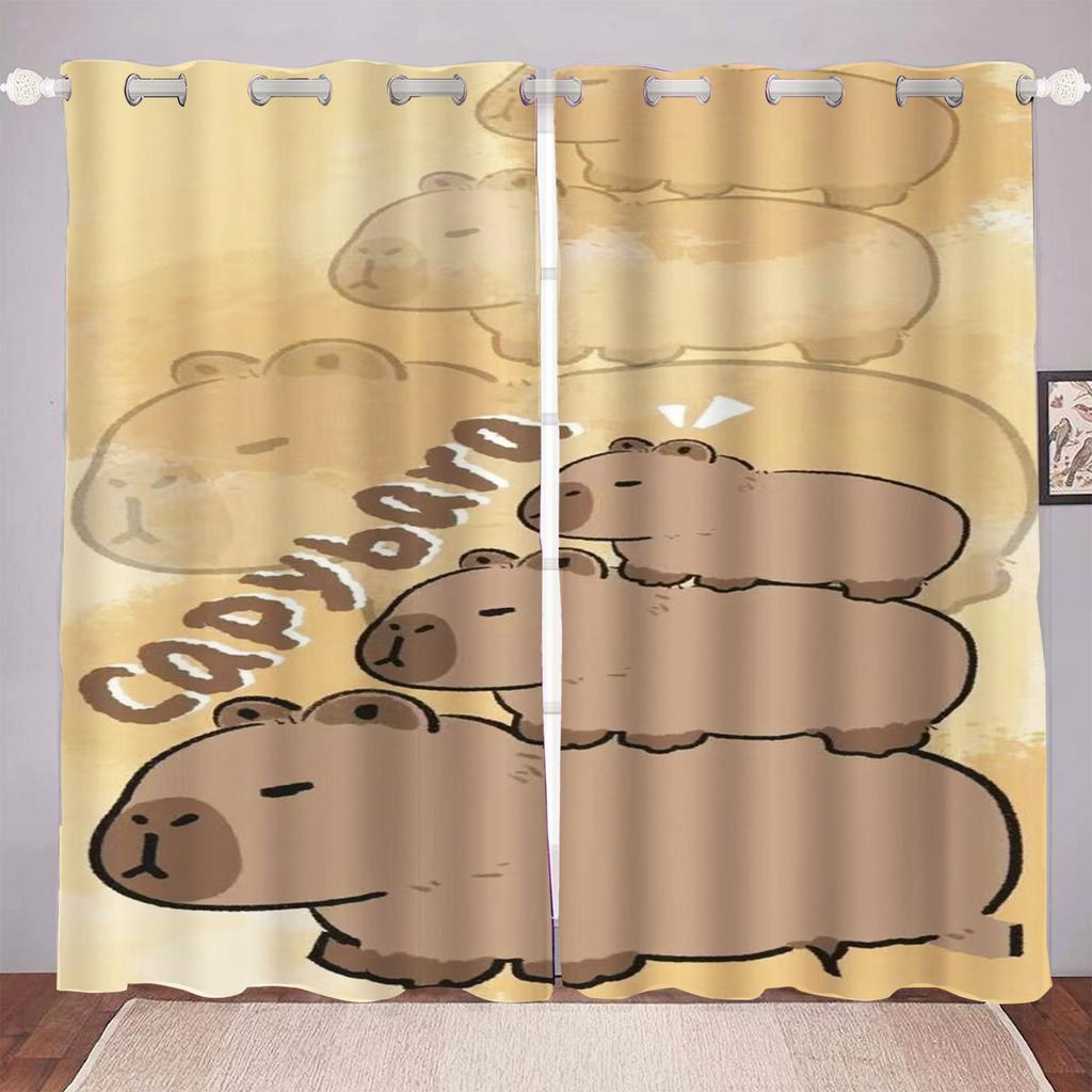 Cartoon Capybara Curtain for Kids Bedroom Polyester Shade Animation Cartoon Room Decorations Multiple Sizes