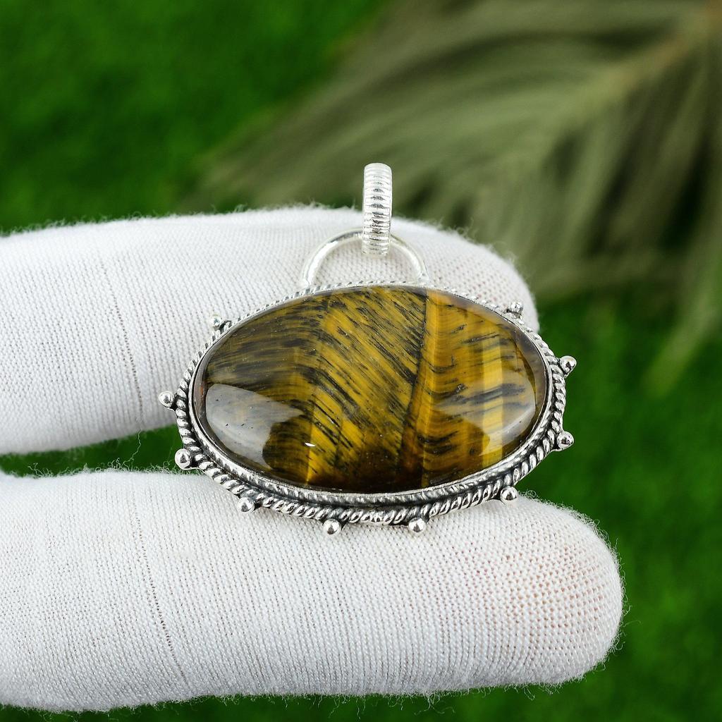 Jubileumsgåva till henne Hänge med naturlig tigeröga ädelsten 925 sterlingsilver