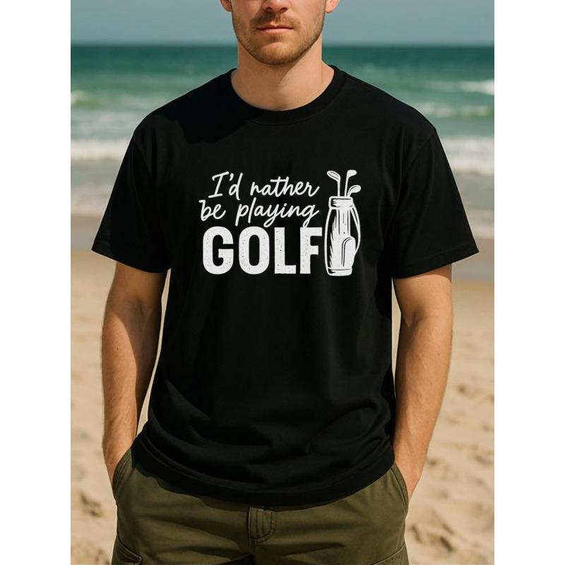 European sizes Fun I'd Rather Be Playing GOLF Men's Printed Short-sleeved Shirt, Medium Elasticity Fashionable Style
