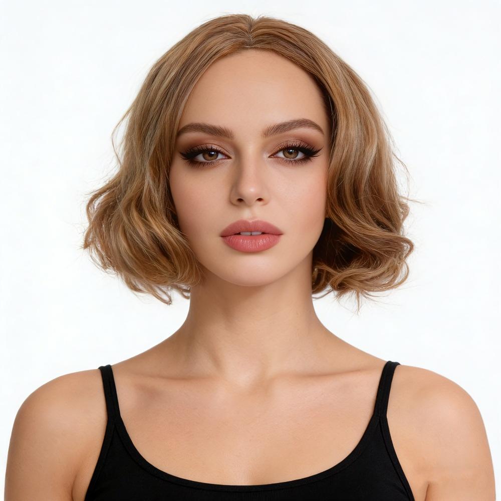 Women Synthetic Short Golden Brown Fluffy Hair Natural Wave Blonde Wigs For Daily Cosplay Heat Resistant Fiber
