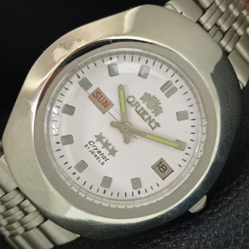 GENUINE VINTAGE ORIENT CRYSTAL AUTOMATIC JAPAN MENS WHITE DIAL WATCH a706311-1