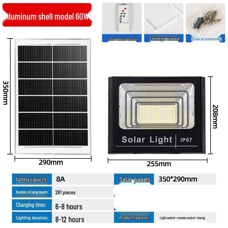 NuFeng 60W Aluminum Solar Garden Flood Light