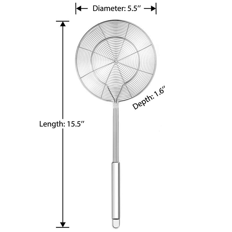 Solid 18/8 Stainless Steel Spider Strainer Skimmer Ladle, 14/16/18/20cm Frying Spoon with Handle - Kitchen Tools