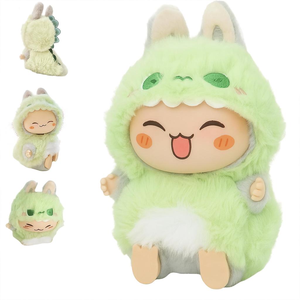 17cm Plush Green Dinosaur with Plump Shark Outfit, Suitable for First, Second, and Third Generations, Fluffy Costume for Plush Dolls