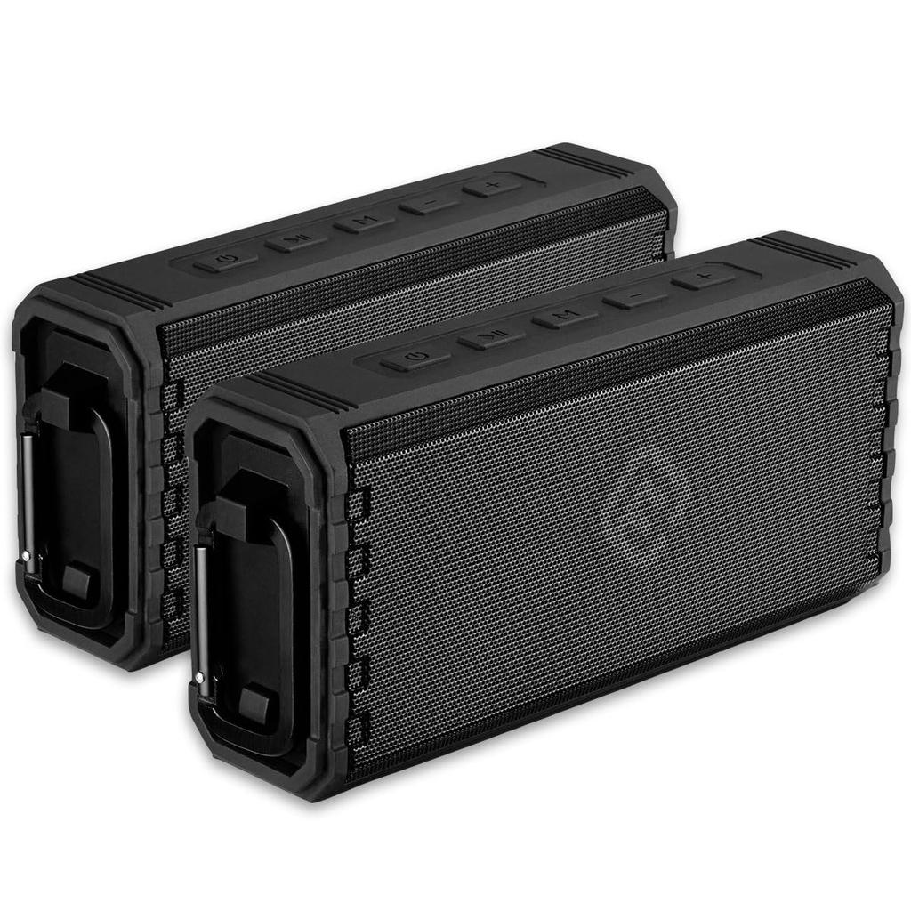 This set includes two speakers: Connect two of these in TWS mode to create a truly wireless stereo soundscape. The two speakers become left and right, creating a truly immersive surround sound experience anywhere. TWS is supported for Bluetooth, SD card, and AUX inputs.