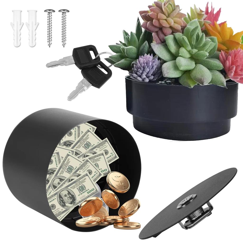 Lockable Hidden Safe Flower Pot 2-Layer Separable Security Box Secret Stash Organizer for Money Keys Jewelry & Other Valuables