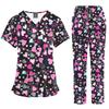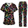 Flerfärgade Joggingdräkter Läkare Sjuksköterskeuniformer Kortärmade V-ringade Toppar Fickbyxor Sjuksköterskeskrubbar Set Medicinska Kliniska Kläder