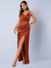 Women's Japanese Silk-like Satin Dress – Spring/Autumn, Sexy Pleated Bridesmaid/Formal Skirt