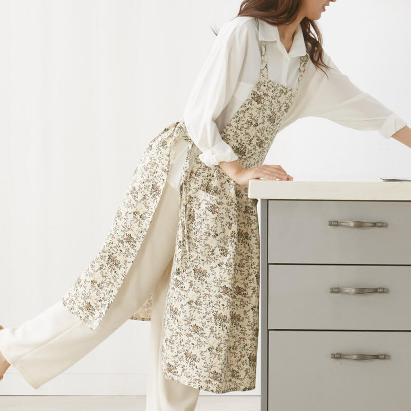 Luna Serendipity Flower Pure Cotton Team Long Waterproof Apron Beige