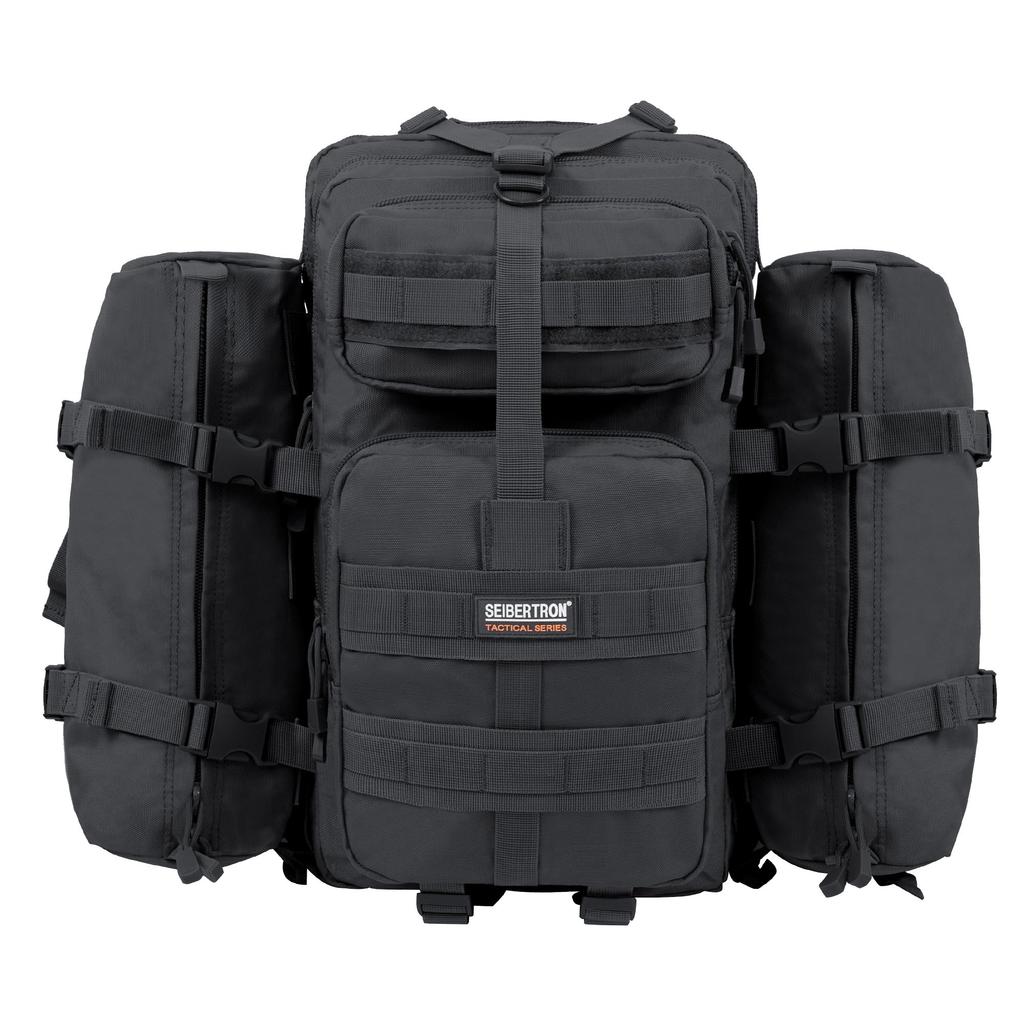 Seibertron Tactical Backpack with 37L 2 3-Piece MOLLE, Waterproof, Lightweight, Outdoor, Military, U.S.-Style, Black, (1+ Capacity)