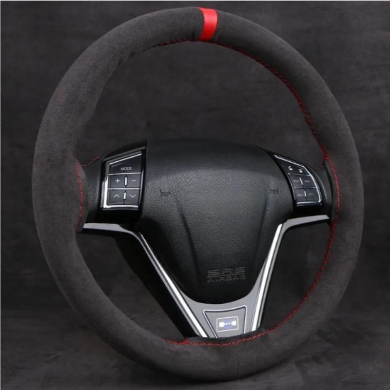 Car Steering Wheel Cover Soft Wear-Resistant Comfortable Wear Resistant Universal Hand Sewing Black Suede Leather Braiding
