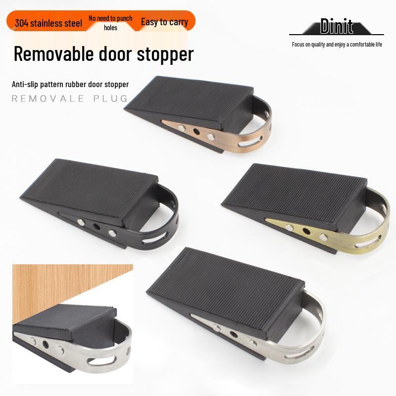 Non-slip Rubber Wood and Stainless Steel Door Stopper for Glass and Thick Doors