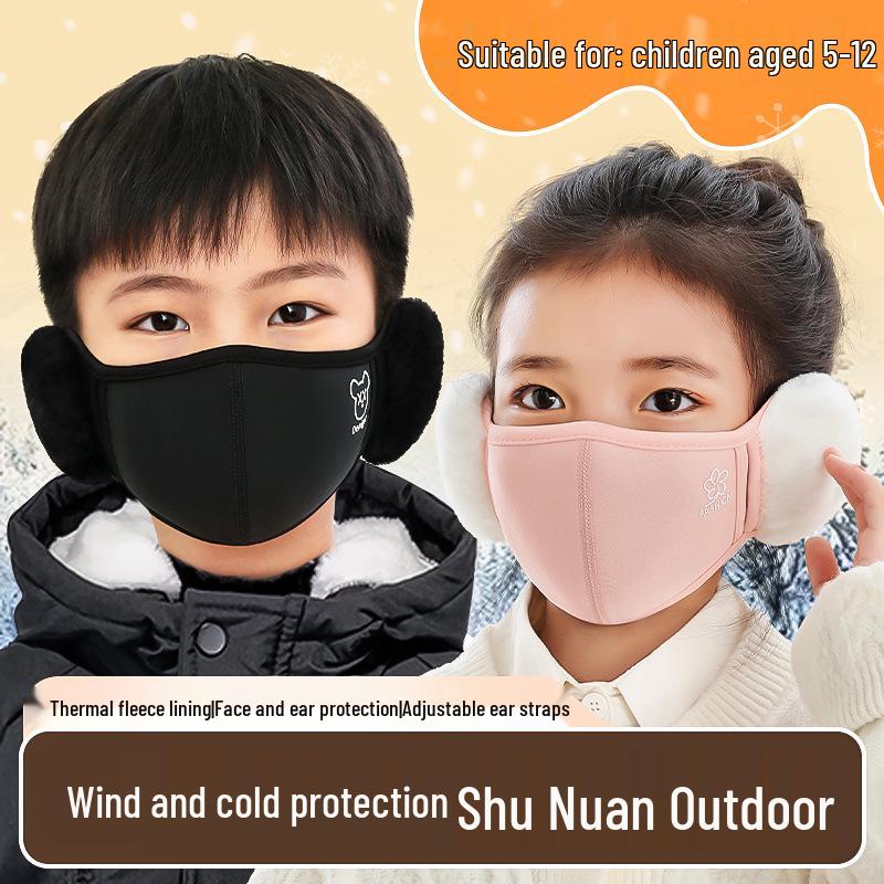 Kids' Cute Winter Earmuff Face Mask: Warm, Windproof, Breathable for School & Cycling