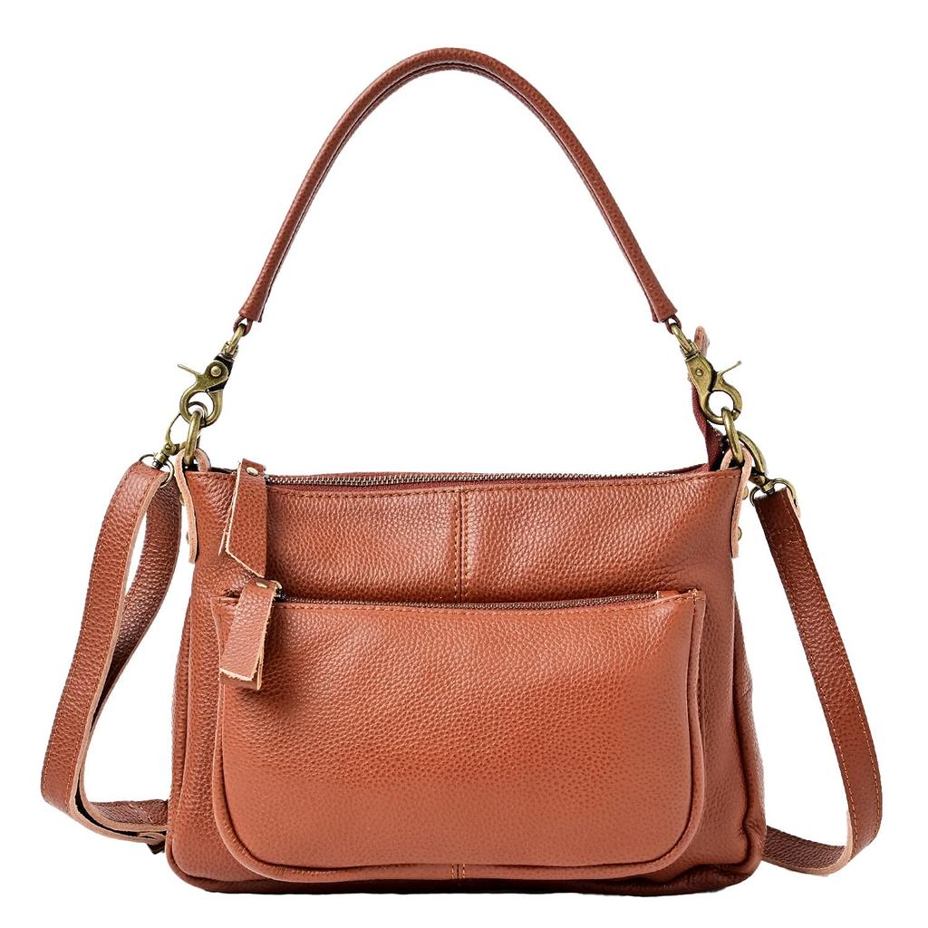This bag comes with two leather straps, short and long, and can be worn as a crossbody or handbag. It's a popular women's leather bag for everyday use, commuting, and travel. The hardware is available in gold or black.