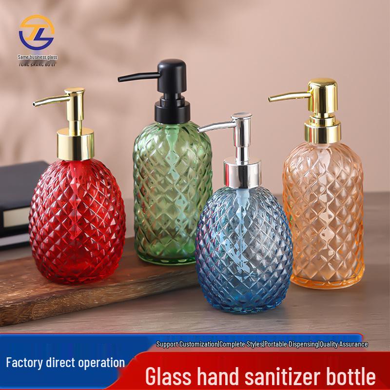 Colored Pineapple Glass Hand Sanitizer and Shower Gel Pump Bottle – Refillable, Sealed, Thickened, Patterned Empty Bottle.