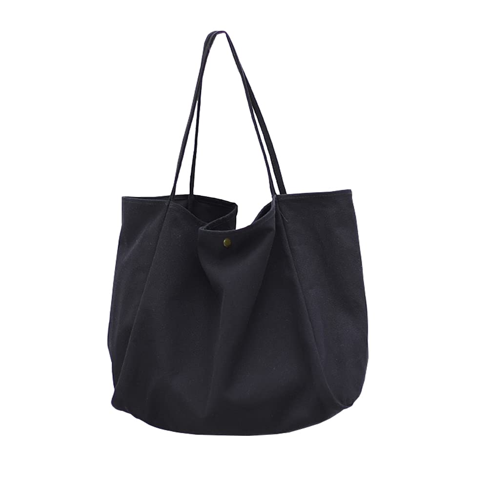 XINYOSHO Tote Bag, Canvas Shoulder Bag, Large Capacity, Solid Color, Women's, Handbag, Canvas, Unisex, CommuterSchool, Black