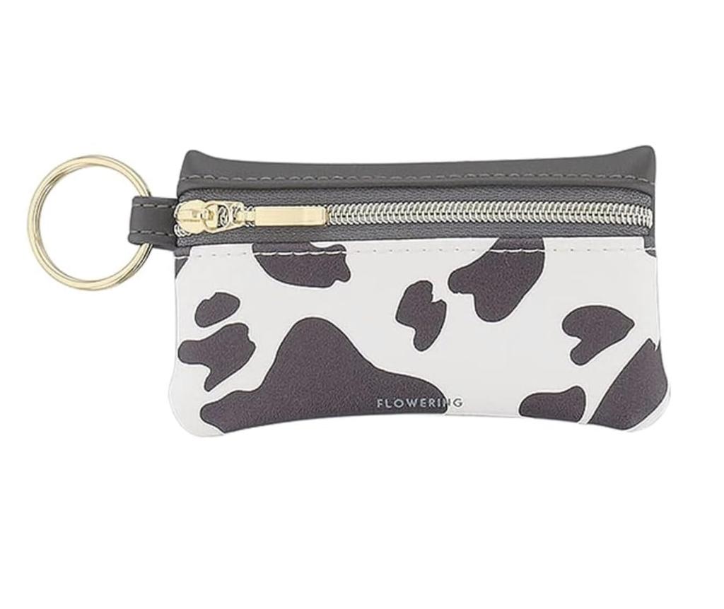 Flower Ring Smart Key Pouch with Cow Print and Heart Motif, GKP0024-BK (Black)