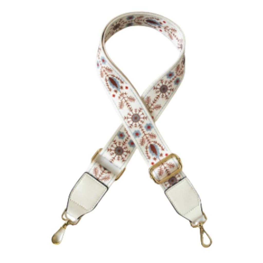 [To all Genie] Floral Print Shoulder Strap for Bags, Thick and Cute, Adjustable Length, Suitable for Crossbody Bags (White x Brown)