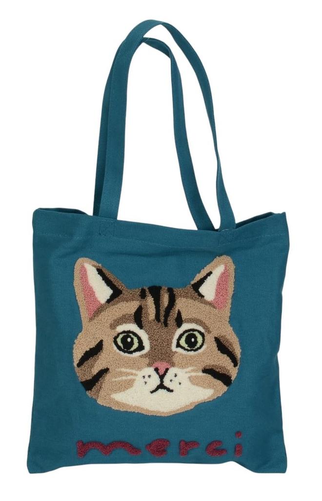 Friends Hill ouaf ouaf & miaou marché Sagara Embroidered Gussetless Tote Bag, Tiger Cat Design, 912052