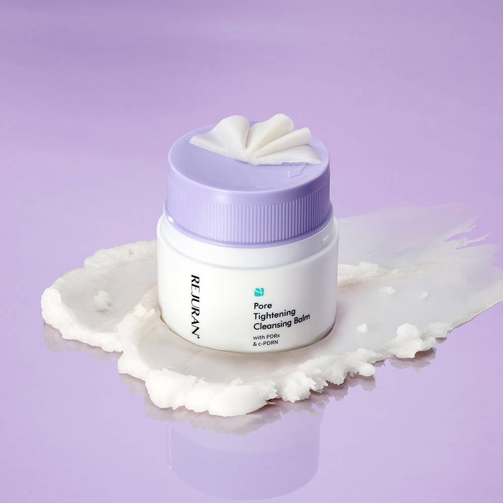 Effectively remove makeup, sunscreen, and impurities while caring for enlarged pores with REJURAN’s Pore Tightening Cleansing Balm. Enriched with PDRx™ and c-PDRN (Hydrolyzed DNA), this nourishing balm helps support skin regeneration and improve elasticity even during cleansing. The sherbet-like texture melts into oil upon contact, dissolving excess sebum and blackheads without stripping moisture. Leaves skin smooth, refined, and comfortably hydrated after every wash.