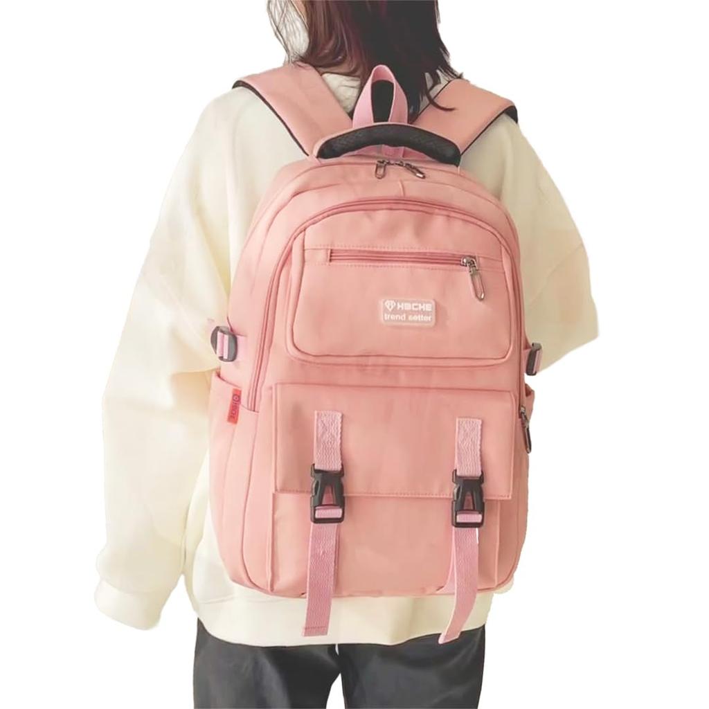 D-SACK Casual Nylon Backpack, Lightweight, A4 Size (14 Inch), Large Capacity, for Commuting and School (Pink)