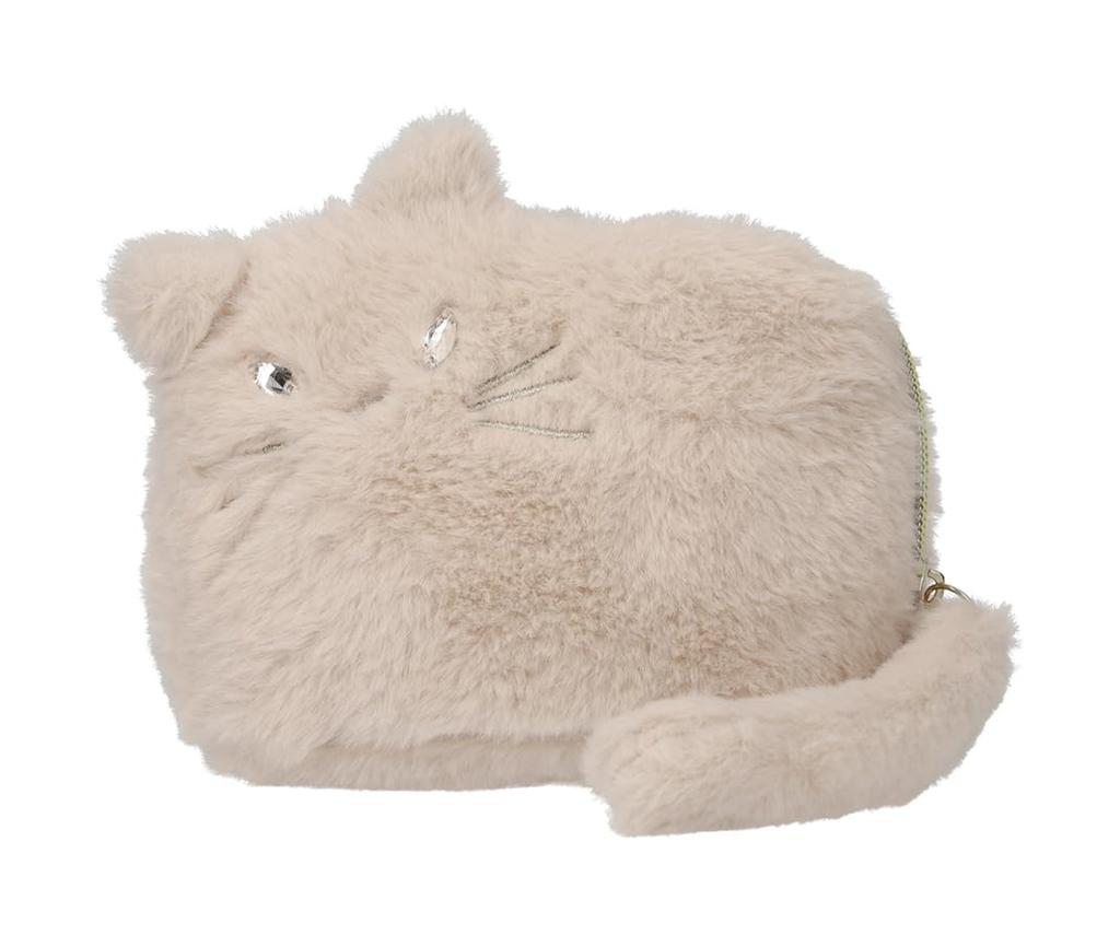 Friends Hill FEEL WARM Fluffy Cat Fur Gusseted Pouch, Natural, BW-198-68