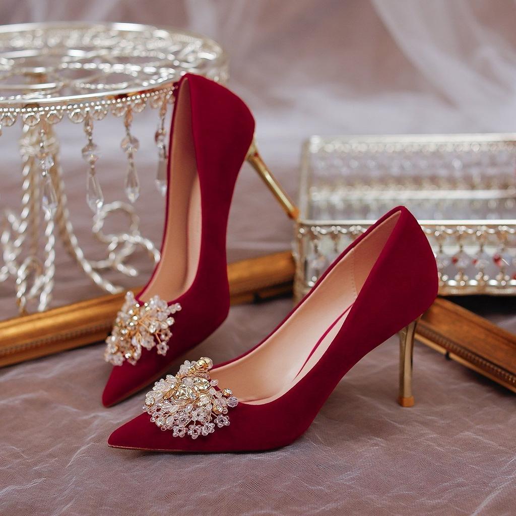 Pointed wedding shoes women's new main wedding dress bridal shoes can usually wear bridesmaid shoes crystal high heels