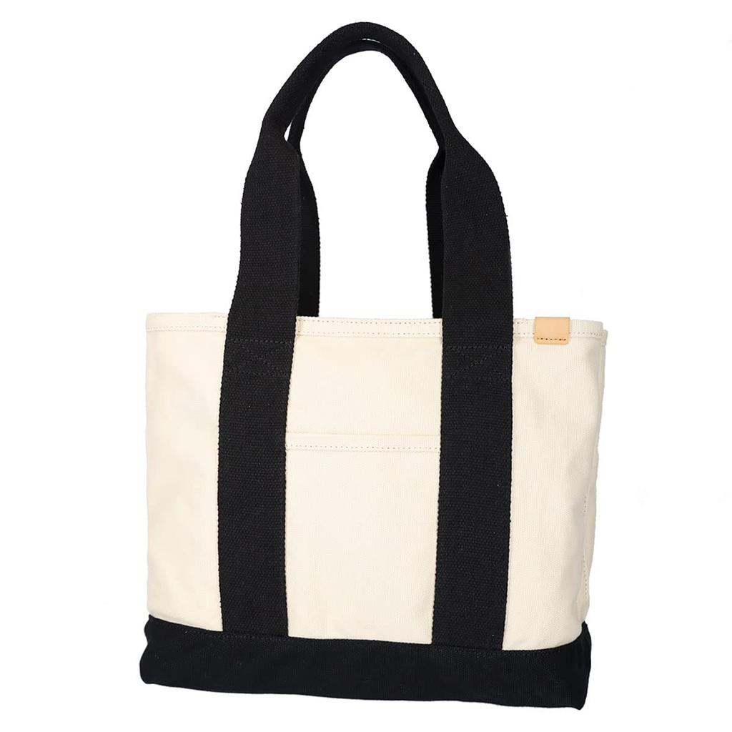Dot and Stripe Monopia Canvas A4 Divided Tote Bag, DS-15586, Natural x Black