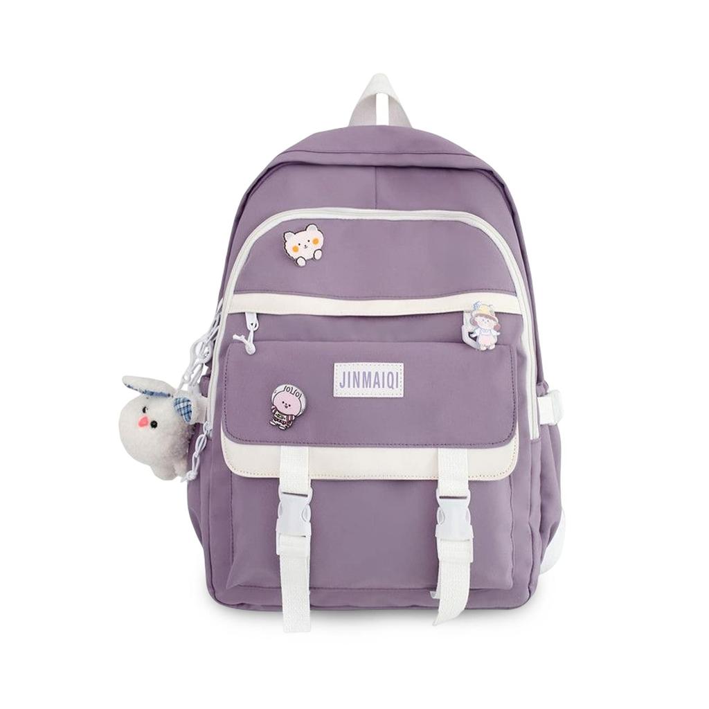 FANDARE Women's Korean Backpack, Large Capacity, Lightweight, Cute with Charm, 15.6-inch Laptop Storage, Back Pocket, Waterproof Nylon, Purple, for
