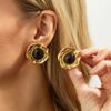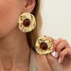Fashion Style Metal Round Pleated Pendant Collar, Light Luxury Resin Gemstone Choker Necklace.