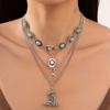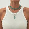 Ethnic Style Imitation Turquoise Cross Beaded Necklace, Retro Love Bow Pendant Collarbone Chain