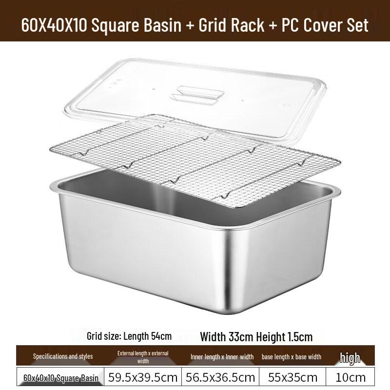 Aokewen 304 Stainless Steel Rectangular Drain Pan with Transparent Lid