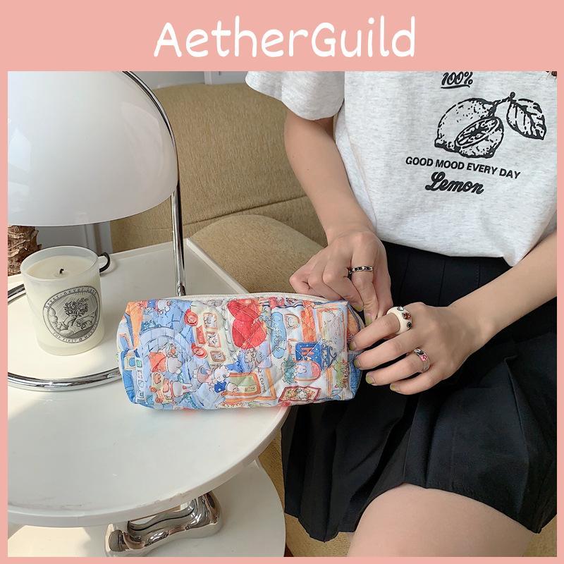 Trendy Flower Patterned Cotton Makeup Bag Stationery Pouch Large Capacity Brush Storage Pen Case