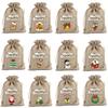 Jul-färgad linneväska med dragsko Julgodis Kaka Presentförpackningspåse Tecknad Jul Älg Smycken Present Förvaringspåse