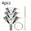 Stainless Steel Kitchen Funnel Set with Cleaning Brush for Transferring Honey Beverages Essential Oils and Other Liquids