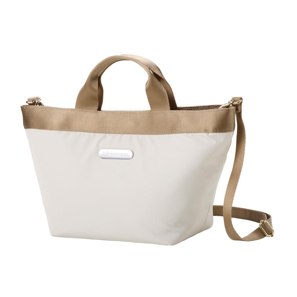 MIKIHOUSE Tote Bag 40-8288-145, Adult Size, Unisex, Suitable for Moms and Dads, Crossbody, 2-Way, Small, Mini Tote, Beige
