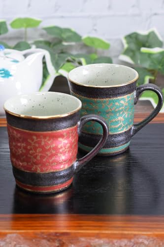 Kutani Ware Pair of Mugs, Gold Arabesque Pattern, AK5-0886